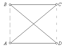 Kiválasztunk egy maximális fokszámú embert, A-t, (egy ember foka=az általa ismert emberek száma), és egy B-t, akit nem ismer. Ha van olyan C, akit B ismer, de A nem, akkor – mivel B foka nem nagyobb A fokánál –, van olyan D is, akit A ismer, de B nem. Ezek négyen jók.