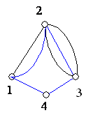 Négy pontra a következőképpen lehet ellenpéldát csinálni: felvesszük az előbbi gráfot, tehát egy hárompontú gráfot, ahol az 1-es és 2-es között 1 él fut, a 2-es és 3-as között pedig kettő.
