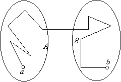 Ha van két nem üres ponthalmaz, A és B, amelyek között nem fut él, akkor a gráf nem lehet összefüggő, mert A semelyik pontjából nem vezet út B egyik pontjába sem. Ha viszont a gráf nem összefüggő, akkor van két pontja, amely között nem vezet út. Legyen ez a két pont a és b. Ekkor az a-ból úttal elérhető pontok halmaza és a komplementere sem üres (az előbbibe mindenképp beletartozik a, az utóbbiba b). E két halmaz között pedig nem vezet él.