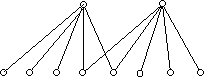 49.          a) Ha egy gráf 2-átmérőjű, akkor összefüggő, tehát n pont esetén legalább n–1 éle van. Másrészt a csillag olyan 2-átmérőjű n pontú gráf, amelynek pontosan n–1 éle van. Tehát a minimális élszám n–1. Könnyen belátható az is, hogy más 2-átmérőjű fa nincs, ez következik b)-ből: