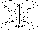 21.          Ha a gráf nem összefüggő, akkor legalább két komponensből áll. Ha több mint két komponensből áll, akkor valamelyik két komponens között még húzhatunk be éleket, ezzel az élszámot növeljük és a gráf továbbra sem lesz összefüggő. Tehát a maximális élszámú nem összefüggő gráfban két komponens van. Ha ezek pontszáma k és nk (feltesszük, hogy knk), akkor az élszám kétszeresének maximuma
