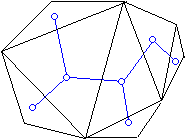 41.          Ha a háromszögek súlypontjait vesszük egy gráf pontjainak és két ilyen pontot összekötünk, ha a megfelelő háromszögek határosak, akkor az így kapott gráf fa.