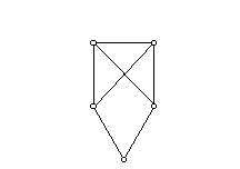 Ezt a gráfot leírhatjuk úgy, hogy ötszög két „metsző” átlóval. Végül ha három másodfokú és két harmadfokú pont van, akkor két eset lehetséges: ha a két harmadfokú pont van összekötve, akkor az összekötő élt elhagyva egy 2-reguláris gráfot kapunk, s ez öt pont esetén csak az ötszög lehet, tehát az így kapott gráf az ötszög egy átlóval. Ha viszont a két harmadfokú pont nincs egymással összekötve, akkor a következő gráfot kapjuk: