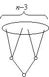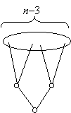 Marad az az eset, ha a második szinten legalább három másodfokú pont van. Ebben az esetben kicsit pontosabban kell számolnunk. Használni fogjuk az indukciós feltevést is, éspedig olyan formában, hogy elhagyunk egy pontot a gráfból. Nyilván célszerű a legkisebb fokú pontot elhagyni, tehát egy másodfokú pontot. Ha az elhagyásával keletkező gráfban fennállnak az indukciós feltevés használásához szükséges feltevések, akkor e gráfban legalább 2(n–1)–5=2n–7 él van, s ha ehhez hozzávesszük az elhagyott két élt, akkor az eredeti gráfban legfeljebb 2n–5 él van, s ezt akarjuk bizonyítani.